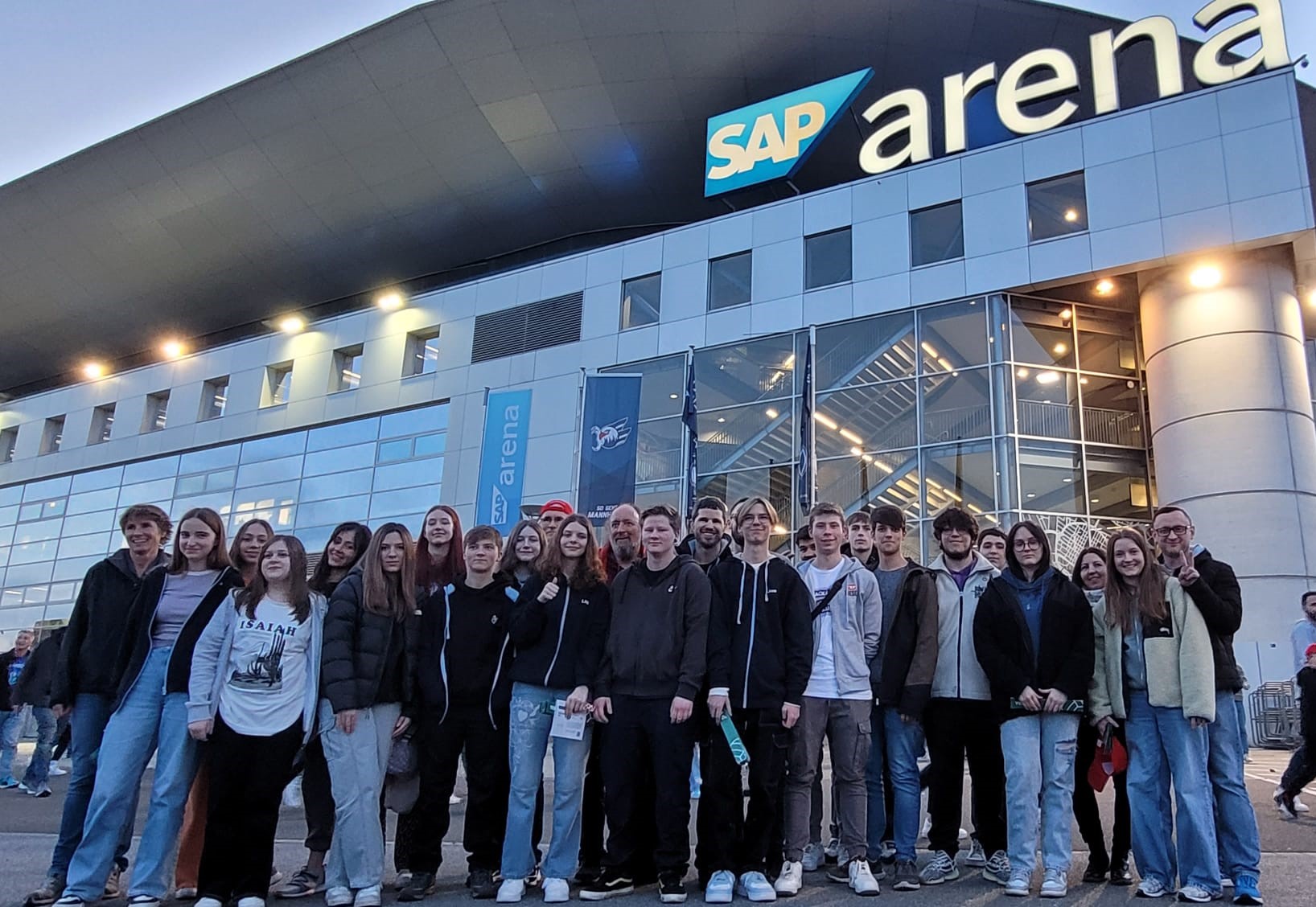 Am 03.03.24 war es soweit: mehr als 40 überwiegend junge Schlüchterner Volleyballer*innen machten sich auf zum DVV Pokalfinale in die SAP Arena nach Mannheim. Alle (einschließlich Busfahrer) waren überwältigt von der Atmosphäre in der Halle, wo vor über 10.000 Zuschauern Volleyball vom Feinsten geboten wurde. Zunächst wurde bei den Frauen Allianz MTV Stuttgart durch einen 3:0 – Erfolg gegen SC Potsdam deutscher Pokalsieger 2024, dann ließen hoch favorisierten Recycling Volleys Berlin Gegner WWK Volleys Herrsching mit ebenfalls 3:0 keine Chance. Auch wenn die Zuschauer sich vielleicht zwei spannendere (und längere) Spiele gewünscht hätten waren doch alle sehr zufrieden und beeindruckt von der Leistung der vier Teams.