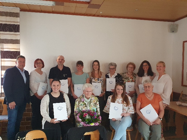 Zu Beginn der Versammlung standen die Ehrungen langjähriger Mitglieder auf der Tagesordnung. Es ist immer wieder ein freudiges Ereignis verdiente und langjährige Vereinsmitglieder an so einem Tag ehren zu dürfen. So der 1. Vorsitzende Jörg Heim. Es wurden Mitglieder für 25/40/50/70 und sogar 75Jahre Mitgliedschaft im Verein geehrt. Eine besondere Ehrung für 75 Jahre Mitgliedschaft wurde der Ehrenvorsitzende Else Blum und für 50 Jahre Sandra Stoß zuteil, die seit Jahrzehnten eine enge Verbundenheit zum Turnverein pflegen. Es wurde an alle geehrten Urkunden, Nadel und Präsente überreicht.